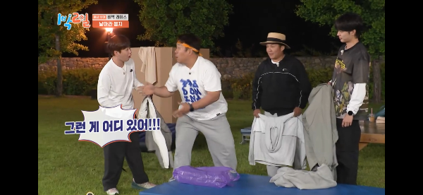 이 준이 탈락했고 이번 게임에서도 또 한 명 최다비박용품템 수여자 선정 게임 진행중.