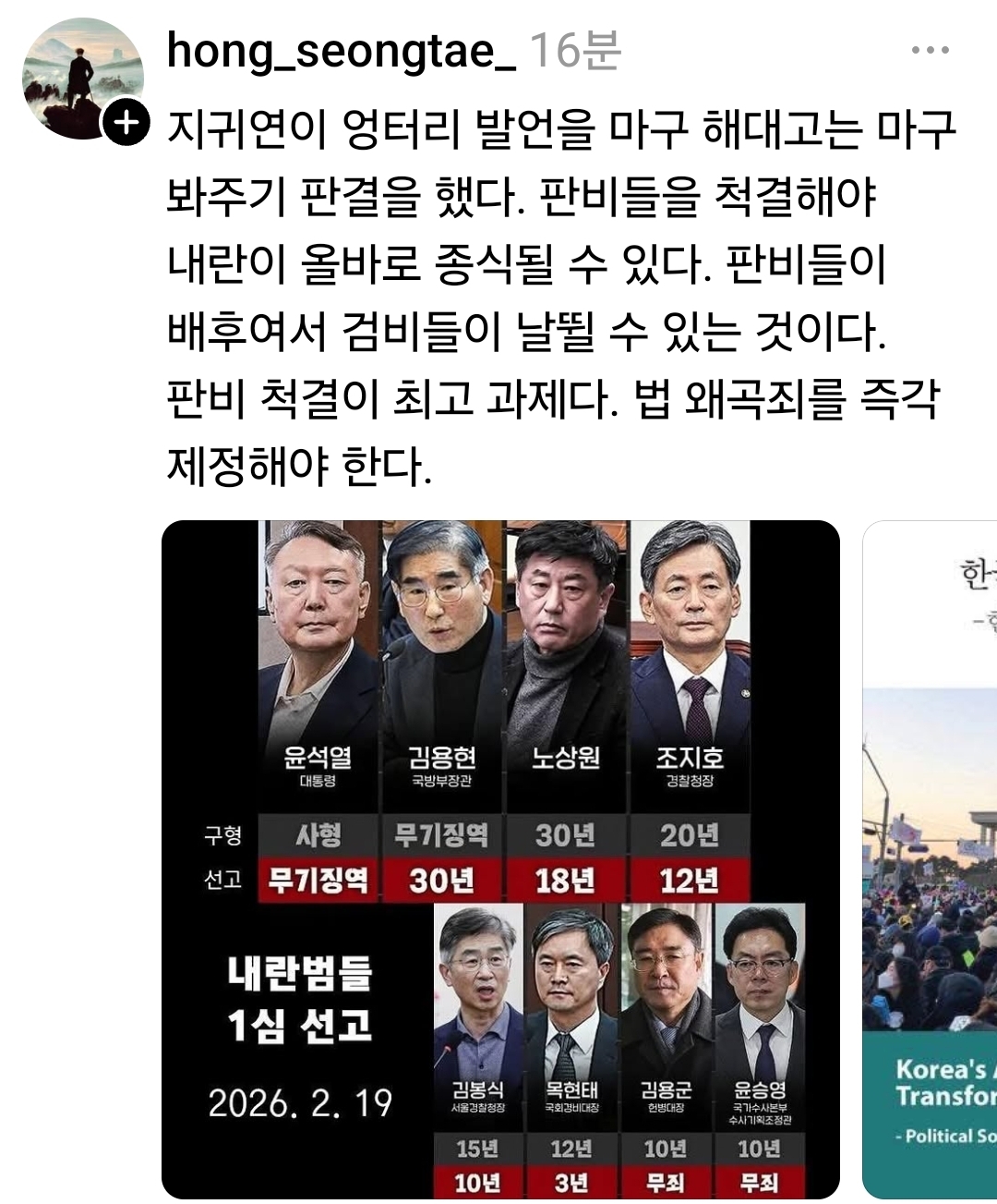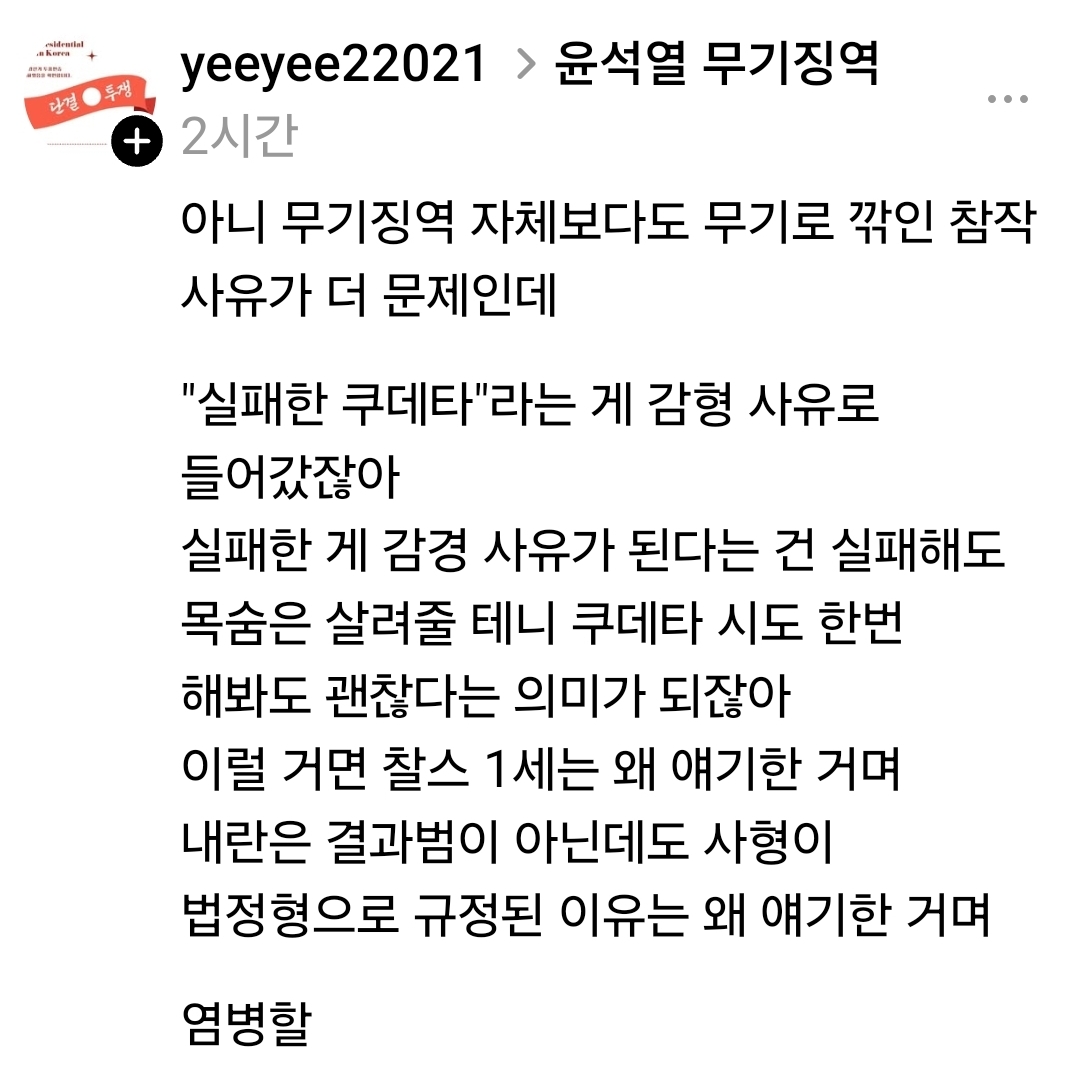 윤석열 무기징역 선고후 쓰레드 명언 모음 본문