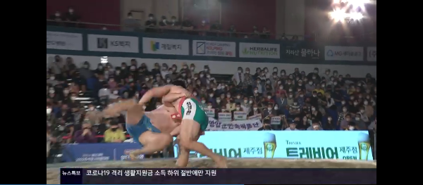 들배지기로 선승뺐겼다가 들배지기로 최종승리.