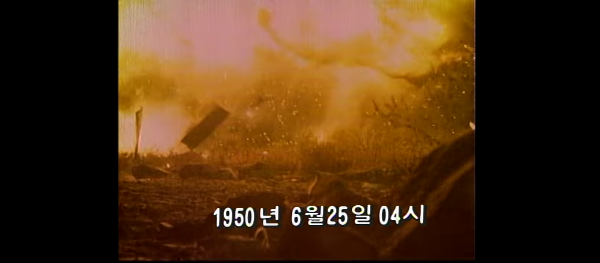 이 장면은 아마도 북한에서 김일성 정부가 군을 장악하며 남침 준비에 박차를 가하고 있다고